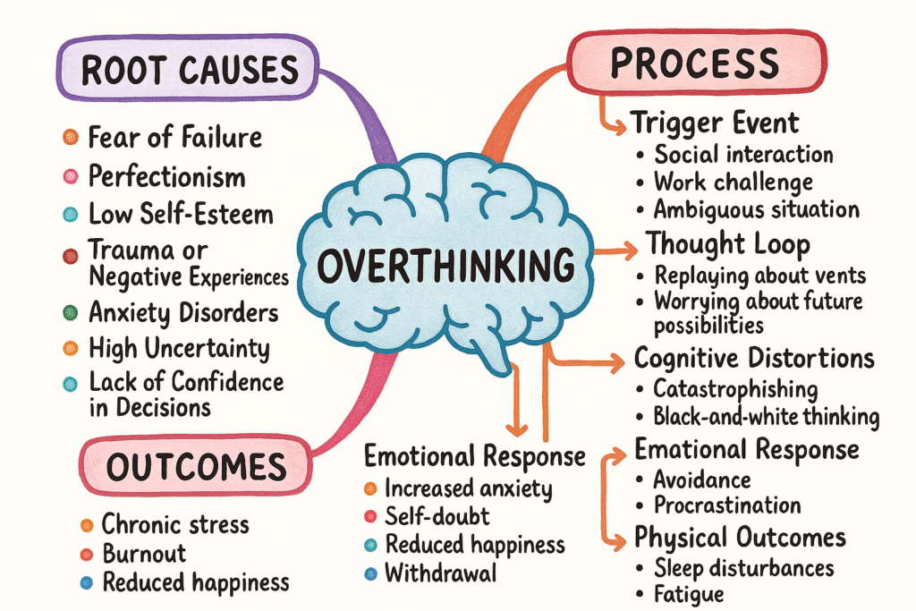 Overthinking happens due to a mix of personal fears, habits, and outside pressures. Let’s understand these causes better